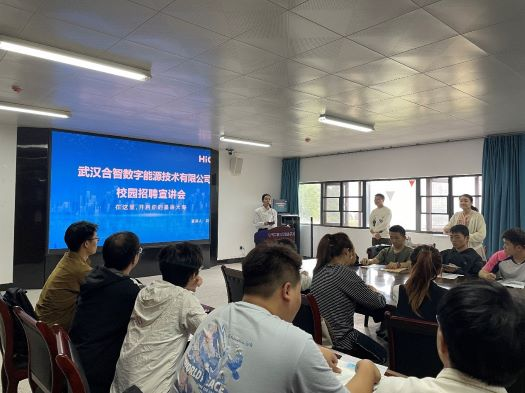 为挖掘毕业生就业潜力,拓宽毕业生就业去向,推动更高水平的就业创业工作,2024年10月15日下午,电气工程与自动化学院邀请武汉合智数字能源技术有限公司来校举办专场宣讲招聘会。招聘宣讲和现场面试在产教融合中心举行,该公司负责人事工作的刘经理、王经理等工作人员,学院党委委员、专业教师陈兮博士以及辅导员黄新望、实习负责老师庞昭、学院在校毕业生等人员参加相关活动。
