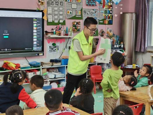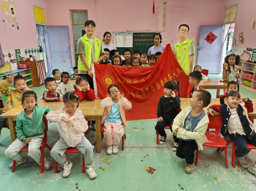活动最后,志愿者与老师、小朋友们合影留念。此次手工作品宣讲活动不仅让小朋友们感受到了动手创造的快乐和成就感,更在游戏中激发了他们对数学的兴趣。未来,数学与统计学院青大队将继续发挥专业优势,结合劳动教育,为小朋友们讲好数学故事,做好数学启蒙。
