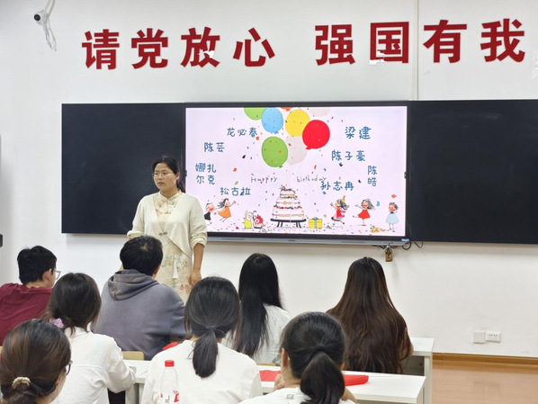 班会最后,是集体生日会环节。为8位十月过生日的同学送上生日蛋糕,全班齐唱生日歌,与祖国同庆生,与祖国同欢乐。