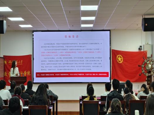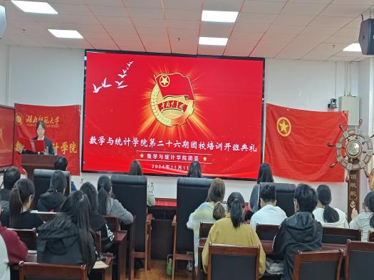 为了提高同学们的思想觉悟和综合能力、增强团组织的凝聚力和战斗力,推动共青团事业的发展,数学与统计学院于11月11日在信息大楼10603召开了第二十六期团校开班典礼暨团校第一讲。数学与统计学院团委副书记屈媛媛,辅导员杨宇森、苏梦月,团委学生副书记汪悦出席典礼,112位团校学员参加典礼。开班典礼由组织部见习干事郑楹馨主持。