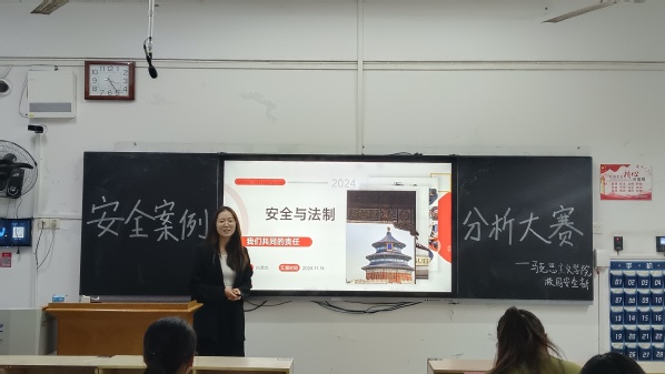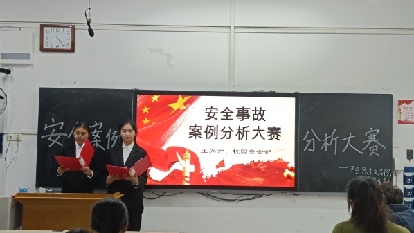 为丰富同学们的安全法律知识,增强安全防范意识,马克思主义学院于11月17号下午14时在教育大楼1101举办了以“安全教育在心中,法制教育于行动”为主题的安全事故案例分析大赛。学院辅导员方大鹏、自律委员会主席兼学生会副主席刘佳伟、学生团委副书记兼马列研讨会副会长郭心如出席活动。本次比赛由校园安全部干事朱思雨和郑雨晴主持。