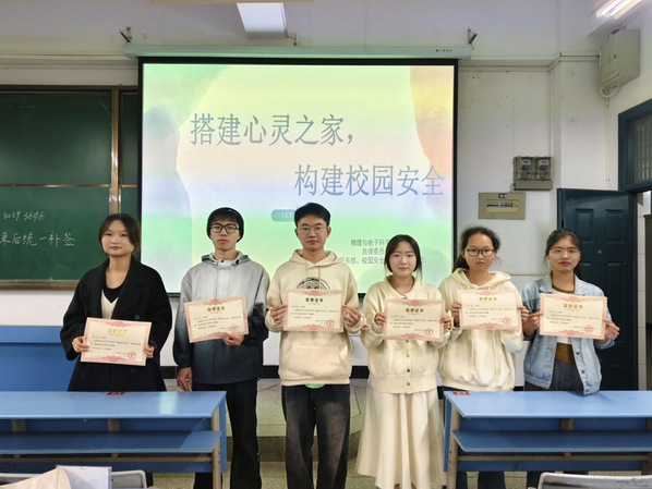 为宣传心理健康及校园安全相关知识,培养学生安全防范意识,11月10日晚,物理与电子科学学院自律委员会心理服务部、校园安全部及宿舍管理部于科技大楼9810教室联合举办了“搭建心灵之家,构建安全校园”主题演讲比赛。本次比赛由学生会副主席顾乡、自律委员会主席黄娜、副主席赵玲、宿舍管理部副部长周承伦担任评委,心理服务部部长郭涵主持。