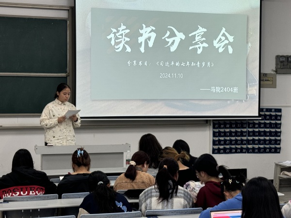 为提高同学们的阅读兴趣,营造良好的读书氛围,2404优师班于11月11日在科技大楼9502开展了第一次读书分享会。班主任老师方大鹏以及2404班全体同学参与了此次活动,本次读书分享会由班长刘余菲主持。