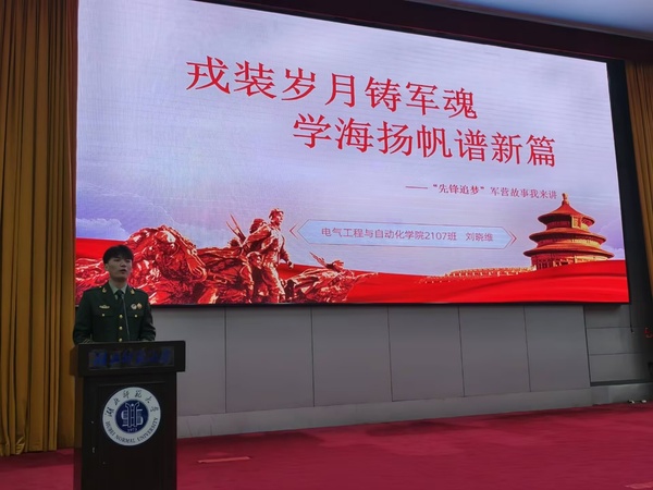 随后,刘晓维、张浩龙和柯学谦分别分享了自己在军营中的经历以及成长的故事。他们用真挚的情感和生动的语言,讲述了自己在军营中的历练与收获,以及退役后如何将军人精神应用到学习和生活中。他们的故事不仅感人至深,更激发了在场学生对军旅生活的向往和对国防事业的热爱。
