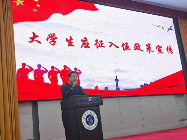 接着,黄新望就当前的征兵政策进行了详细解读。他从征兵的条件、程序、优待政策等方面进行了全面阐述,并结合具体案例,解答了学生在参军过程中可能遇到的疑问。在互动环节中,同学们踊跃提问,黄新望耐心细致地解答了同学们的疑问,在场学生对征兵政策有了更清晰的认识。