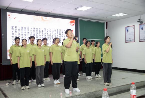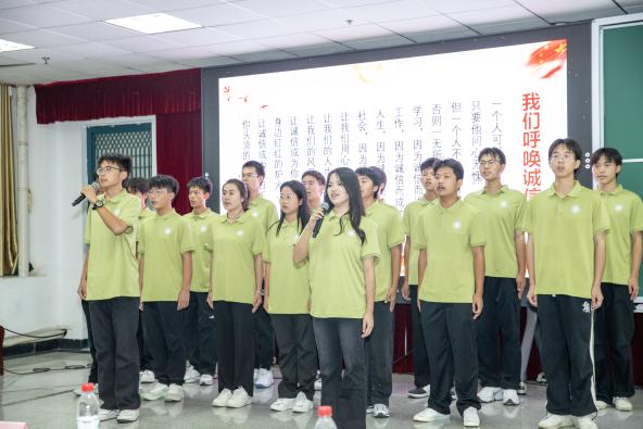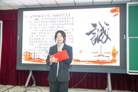 随着悠扬的音乐声响起,白家齐、明莎莎同学带领团学青自成员合唱诚信歌曲,动听的歌声引发人们对诚信的思考。接着,师生一起观看短片《诚》,鲜明生动的故事,诉说着诚信的重要性。随后曹子奇、孟诗然同学带领大家朗诵经典诗句,2203班的李若彤和2302班的韩蓉同学讲述自己和身边的诚信故事,抑扬顿挫的朗颂声轻叩人们的心灵,现实生活事例令人印象深刻,赢得现场一片掌声。现场互动环节,同学们积极分享感受,许多学生直抒胸臆,表达自己的观点,感悟诚信的重要性。祝福卡片交换环节,大家相互祝福和激励,整个活动氛围温馨祥和。