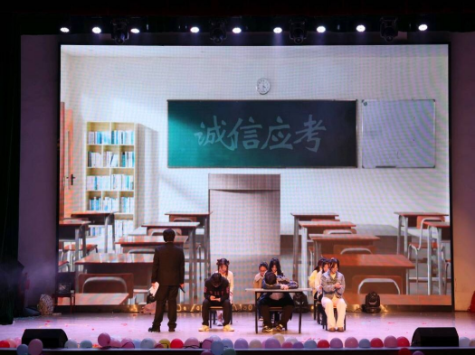 相声《霸总现形记》和小品《当考试还剩十五分钟》幽默的语言和夸张的肢体表达引得现场观众哈哈大笑,同时也现身说法,传达了遵守考风考纪的重要性。