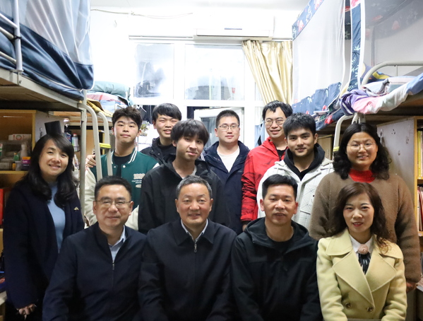 雷儒金一行首先来到23栋学生宿舍,与学生亲切交流。交流过程中,了解到同学们存在着因作息时间不一致而导致的宿舍矛盾。雷儒金结合自身的亲身经历,提醒同学们一定要做到“矛盾不过夜”重视宿舍团结、维护好宿舍关系。同时,他勉励同学们要珍惜大学时光,既要埋头苦读,积累扎实的专业知识,锻炼过硬本领;也要培养个人兴趣爱好,提升综合能力,力求在全面发展的道路上实现自我价值。