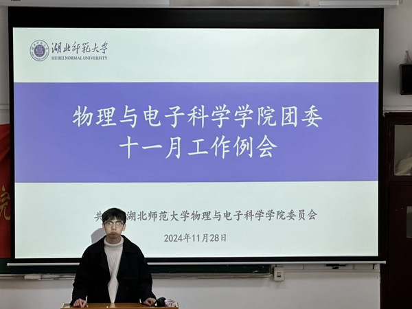 为增强团队凝聚力,提高团委工作质量,11月28日中午,物理与电子科学学院团委于教育大楼1J12教室召开11月工作例会。参与本次会议的有学院辅导员李双翼及团委各部门成员,会议由组织部部长张宇彤主持。