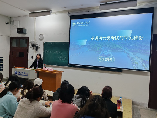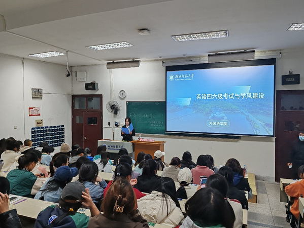 11月30日晚18时30分,在教育大楼1J11教室,外国语学院团总支创新创业部针对即将到来的大学英语四、六级考试,举办了一场高效的考前辅导会。本次辅导会吸引了来自外国语学院、城市与环境学院、教育科学学院、历史文化学院和生命科学学院的备考学生参加。主讲人为外国语学院英语专业陈嘉婧老师。