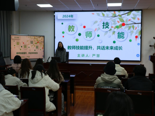 接着,严老师指出教师技能不仅影响教师自身的专业形象,更直接影响教学效果和学生的学习体验,同时传授了诸多教师技能的提升要领,如教学仪态、粉笔字体、语言表达等基本功的训练方法。最后,严老师带领大家观看了我院荣获第十届“田家炳杯”全国师范院校师范生教学技能竞赛二等奖的李鑫宇的获奖视频,进一步启发学生强化教学实践能力。