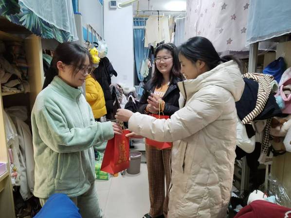 走访中,领导老师们到宿舍给考研学子分发考研大礼包和橙子,为考研学子送上殷切期望与祝福。杨书记与考研学子们亲切交流,对同学们认真备考、坚韧不拔的精神风貌进行充分肯定,并鼓励同学们要以积极的心态面对接下来的学习与考试。赖院长仔细询问了考生们的备考情况,建议大家在最后的冲刺阶段要调整好心态,劳逸结合,学习上要抓重点、建框架,保持一颗平常心,不到最后不放弃、不气馁,并提醒考研学子们诚信考试,严格遵守考场纪律。备受鼓舞的同学们,一洗疲惫紧张的状态,重拾百分百的激情,再次投身于考研大作战之中。
