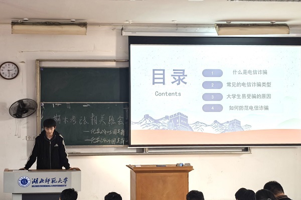 为做好防范电信诈骗主题教育,各班班委通过典型电信诈骗案例分享引导同学们积极互动,主动分享亲身案例或身边案例,共同探讨诈骗手段与防范措施。
