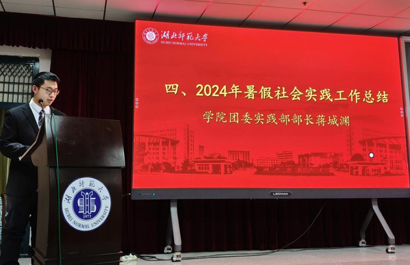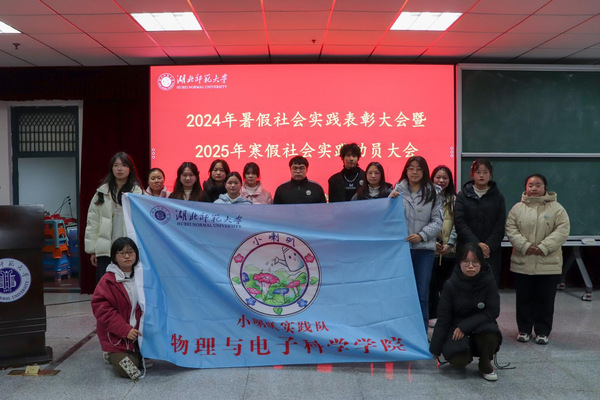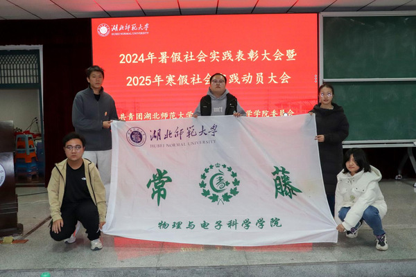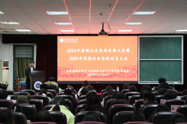 为进一步增进大学生对社会实践活动的了解,鼓励大学生积极参与社会实践活动,12月23日晚,物理与电子科学学院于信息大楼二楼报告厅举行2024年暑假社会实践表彰大会暨2025年寒假社会实践动员大会,参与本次动员大会的有物理与电子科学学院团委副书记田学泽,学工办吕璐、李双翼、仇奥老师,部分兄弟学院团委实践部部长,2024年暑假社会实践队全体队员以及各班学生代表。本次大会由学院团委实践部干事李承霖主持。
