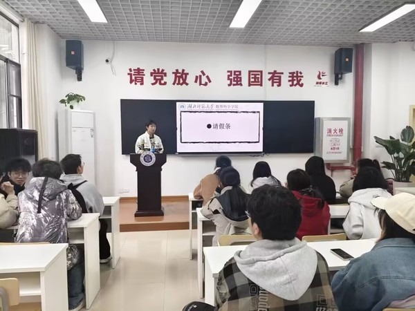 活动伊始,学风建设部部长胡志强就请假及请假条上交的流程规范进行讲解,着重强调了请假条申请要规范,上交要及时。随后,校园安全部部长王维娜指出了目前晚点名存在的问题,并对晚点名流程和记录表登记上交的规范性进行了重申。