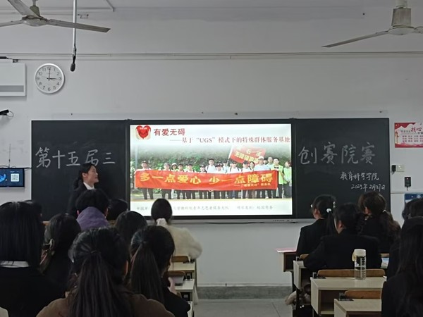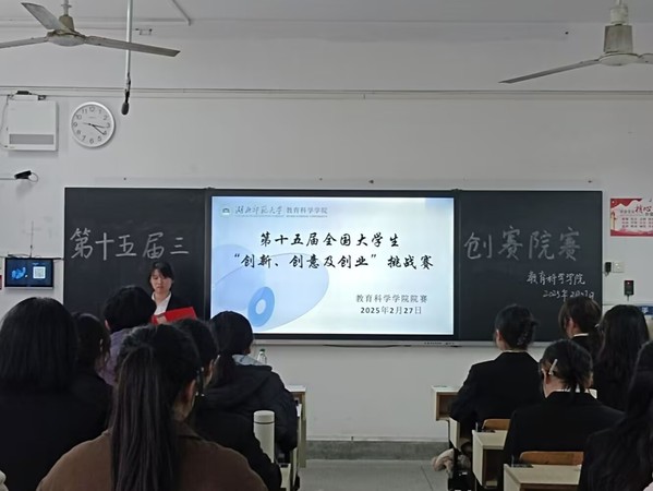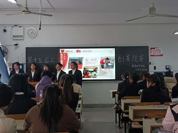 为提升大学生创新意识、创意思维和创业能力,教育科学学院社会实践调查大队创新创业部于2月27日下午在教育大楼1204教室开展第十五届全国大学生电子商务“创新、创意及创业”院赛。本次比赛的评委有教育科学学院团委书记刘丽娟,辅导员张琦、夏青腾,以及团委学生副书记雷伍娇。