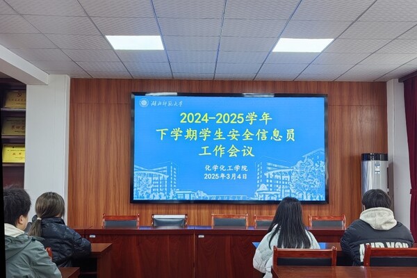 化学化工学院于3月4日中午在化学大楼五楼会议室召开学生安全信息员工作会议。院学工办副主任李海泉、院学生会副主席王俊钧、安全教育部全体成员及22-24级各班安全信息员参加会议。