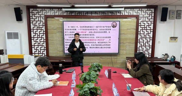 为深化研究生学术素养培养,推动研究生课程教学模式创新和马克思主义理论学科建设,3月3日下午,马克思主义学院在人文楼B座207室成功举办首期《科学社会主义前沿问题研究》研究生课程沙龙。本次活动以从《共产党宣言》看'科学社会主义'的诞生为主题,通过经典文献研读与学术对话,着力提升研究生的理论思辨能力和学术创新能力。