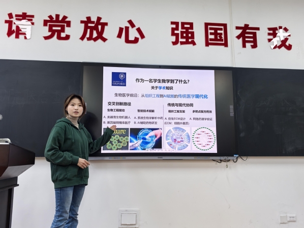 首先,田乐宜同学分享了她在英国牛津大学的游学经历。她生动地描述了在异国的所见所闻,从街头风景到课堂互动,让听众仿佛身临其境,激发了同学们对海外游学的兴趣。