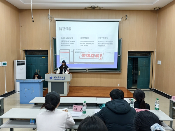 为提升学生反诈意识,普及反诈知识,3月7日下午,生命科学学院在8j21教室举办大学生反诈宣讲比赛。辅导员张良与自律委员会主席熊天担任评委。