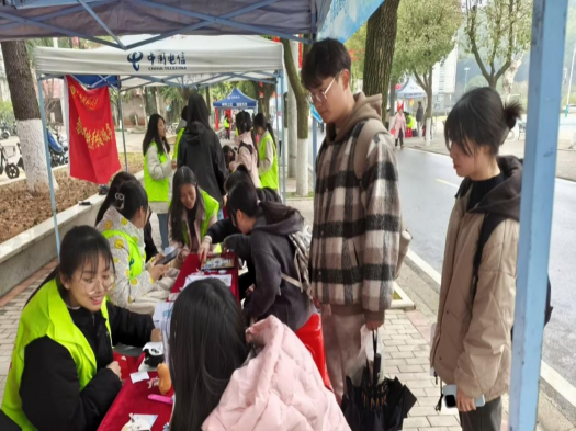 3月9日,数学与统计学院青年志愿者服务大队在湖师大道组织的“学雷锋·青春志愿行”嘉年华中举办“医数同行,健康守护”特色活动。此次活动积极响应健康中国战略,以独特新颖的活动形式,下设七个不同的游戏环节,将数学知识与医疗健康相结合,吸引了众多师生积极参与。