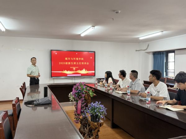 为进一步提升新生班主任的工作能力,确保2025级新生入学工作顺利开展,城市与环境学院于8月28日在资环大楼7420会议室举办了新生班主任培训会。本次培训会由学院党委副书记陈卓主讲,学院全体新生班主任及辅导员参加。