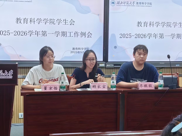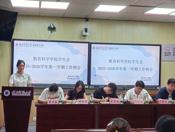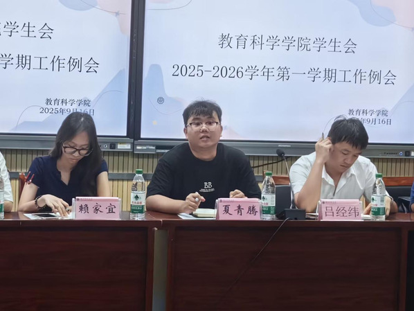 为明确今后工作方向,促进各部门的发展和进步,教育科学学院于9月16日中午在教育大楼1316A召开学生会2025-2026学年第一学期工作例会。本次与会人员有辅导员夏青腾、吕经纬老师及学生会全体中心组成员。