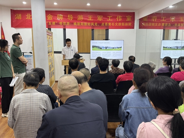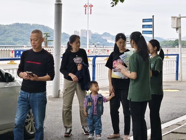 在文旅集中推介环节,来自历史文化学院的燕归巢旅游志愿服务团队的志愿者通过“超大字图PPT”生动讲解了沈家营街道与阳新县的文旅资源,让居民们对两地的旅游资源有了更深入的了解。同时, 现场还发放了含“黄石港区的旅游景点”“阳新丰收一日游路线”等宣传资料,为居民提供了详尽的景点图文介绍。