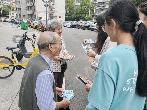 除了文旅推介,活动还融入了丰富的互动环节。其中的有奖竞答环节由历史文化学院燕归巢旅游志愿服务团队的志愿者全程主持,他们通过巧妙设计问题,如“阳新丰收一日游路线中有哪些旅游景点?”“沈家营街道的文旅资源里藏着哪些历史故事?”等,充分调动现场居民的参与热情,引导大家积极投身到互动之中,让居民们在游戏中感受到了丰收的喜悦与邻里的温情。奖品设置也紧扣丰收节主题,以“日常能用、丰收主题”的纪念品为主,既实用又具有纪念意义。在“丰收护环境”志愿清洁行动中,志愿者与居民们一起清理社区广场及周边步道的垃圾,传递了“珍惜丰收成果、爱护社区环境”的理念。文明旅游宣传环节则倡导居民保护生态环境、爱护文物古迹、尊重公共秩序,以文明言行向游客彰显黄石旅游魅力。