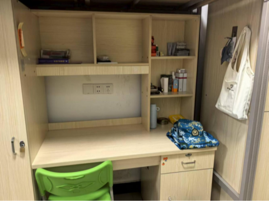 内务整理间,每一处细节都彰显着自律的品格。如果说训练场是对体魄与意志的锤炼,那宿舍内务便是对心性与习惯的打磨。从衣柜里迷彩服与常服的分类叠放、棱角分明,到书桌上水杯、课本的有序排列、一目了然。这份在方寸之间养成的秩序感,不仅让宿舍环境愈发整洁温馨,更在潜移默化中培养了大家的自律意识。
