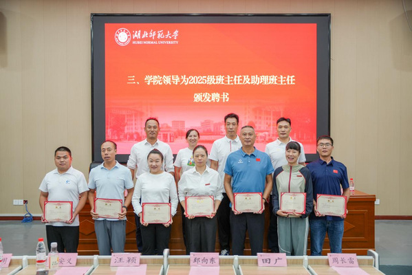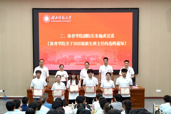典礼在庄严的国歌声中拉开帷幕。体育学院副院长朱施成教授宣读了《体育学院关于2025级新生班主任的选聘通知》。随后,学院领导为2025级班主任及助理班主任颁发了聘书。