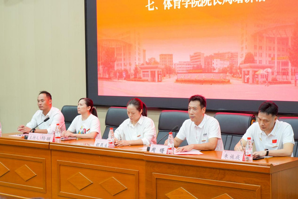 院长周曙教授在讲话中代表学院全体师生员工向2025级新同学表示热烈欢迎。他回顾了学院近五十年的发展历程与办学成就,阐述了“竞合弘毅”的院训精神和学院的育人特色。周曙对新生提出四点希望:明德励志,胸怀家国;勤学笃行,练就本领;体魄与人格并重,实现全面发展;勇于创新,敢为人先。他勉励全体新生尽快融入新环境,珍惜韶华,奋发有为,成为优秀的“湖师体育人”。