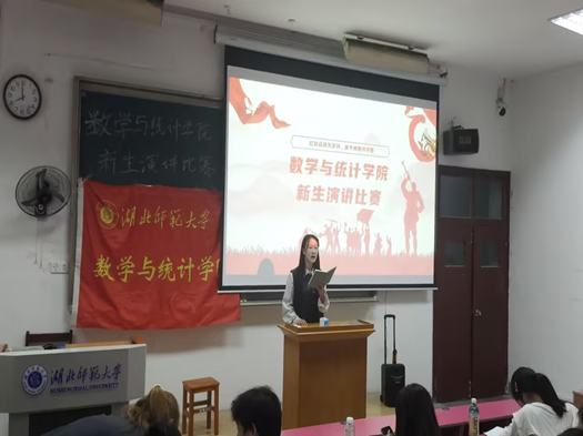 为弘扬爱国主义精神,厚植家国情怀,数学与统计学院学生会文体部于9月27日在教育大楼1J22教室成功举办“忆抗战烽火岁月,谱今朝盛世华章”新生演讲比赛。院团委学生副书记王彩莲、学生会主席陈旋、副主席赵诗雨、易晓担任评委。