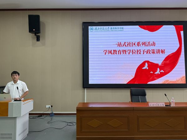 为进一步加强我院学风建设,营造积极向上的学习氛围,帮助新生了解学位授予政策,明确学业发展方向。9月27日,教育科学学院在艺术大楼报告厅举办“一站式社区系列活动—学风教育暨学位授予政策讲解”主题活动。教育科学学院副院长张小菊,辅导员秦姗姗、吕经纬出席此次活动,全体25级本科生、23级联合培养新生共同参与此次活动。