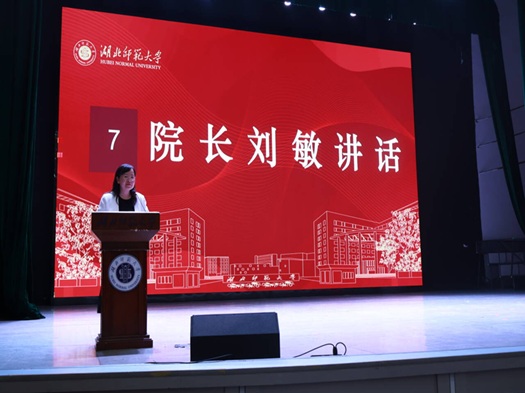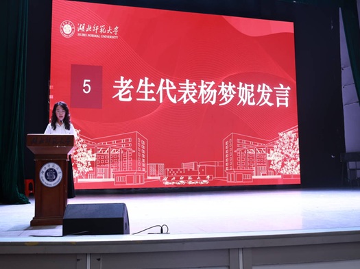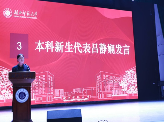 在师生代表发言环节,2025级荆楚优师计划学生吕静娴表达了投身基层外语教育的初心;研究生新生代表申洪彬分享了从夯实基础到专注学术的转变,立志在外语教学法领域深入探索;在校生代表、院学生会主席杨梦妮结合自身经历,鼓励新生善用学院资源,提升专业能力与综合素养。