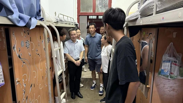 走访中,胡艳军细致询问同学们的饮食起居,关心大家军训及假期后的身体恢复与作息调整情况。他叮嘱同学们要共同维护整洁和谐的宿舍环境,养成良好生活习惯,强调这既是个人健康的基础,也是集体凝聚力和纪律意识的体现。结合体育专业特点,胡艳军勉励同学们将赛场上的拼搏精神、团队协作和纪律意识融入日常学习生活,科学平衡专业训练与文化课学习,实现“训学相长”。他还与同学们亲切交流了新学期的学习规划、训练目标及职业发展方向,鼓励大家树立远大理想,明确阶段目标,努力成长为德才兼备的优秀体育人才。