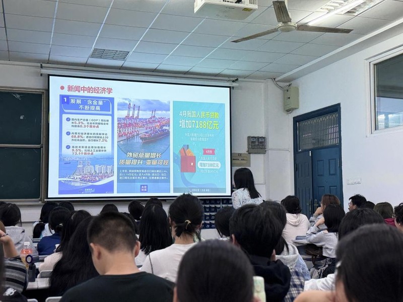 讲座伊始,曹子瑛老师以生动实例与丰富图片,深入浅出地阐释了经济学的学科定义、核心研究对象及其在现实社会中的重要作用,激发了新生的浓厚兴趣。随后,她聚焦经济学专业人才培养的核心目标,系统阐述了以“经济思维+知识融通+能力迁移”为主线的培养体系。她详细介绍了学院构建的“课、证、赛、研、育”五位一体人才培养模式,引导新生明确发展目标,激励大家在未来的学习生活中锐意进取。她特别分享了高效的学习策略,指导学生如何正确运用AI工具辅助学习,并鼓励大家充分利用线下课堂、线上资源及校外实践平台,不断拓展知识边界,提升实践能力。她还重点解读了学院特色项目——“经纬计划”及相关的分班政策。她通过对项目目标、培养路径的讲解,帮助新生科学规划本学期学习任务,初步勾勒个人长远发展蓝图,引导大家脚踏实地、奋发向上。最后,她结合当前经济发展趋势与人才市场需求,全面分析了经济学专业的多元化就业方向与广阔发展前景,为新生描绘了清晰、可期的未来职业图景,增强了大家的专业认同感与发展信心。