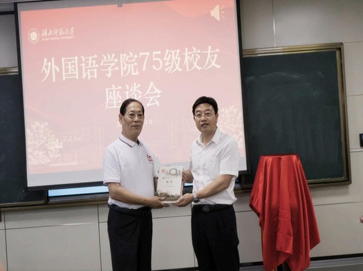 10月11日上午,外国语学院75级近30位校友重返母校,在人文楼21B602会议室举行座谈会。校党委常委、统战部部长肖六亿,宣传部常务副部长祝治国,校友工作处处长陈敬道,教师教育学院院长秦海涛,外国语学院领导班子及院长助理等出席活动。座谈会由外国语学院党委书记王海燕主持。