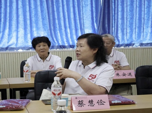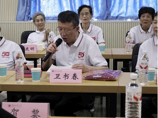 接着,校友代表汪建军、潘雪峰、卫书春、蔡慧俭等先后发言,回顾了在校求学时光,感谢母校和老师的培养,并分享了各自的工作经历与人生感悟。多位校友表示,母校的教育为他们的事业发展奠定了坚实基础。校友阮秋英更以一首深情的诗歌,表达了对母校的热爱与祝福,赢得阵阵掌声。