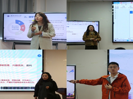 在业务培训环节,袁曼从宏观架构入手,深入阐明了学风建设的创新路径与校园安全管理的底线思维,并就应急事件的处理流程作详细说明;苏梦月阐述了如何通过日常关怀洞察学生心理健康,实现管理与育心的有机统一;屈媛媛聚焦成长支持,详细讲解了“资助”如何与“育人”深度融合,以及学生干部队伍的选拔与培养策略;杨宇森解读了党员发展的规范流程与征兵入伍的激励政策;何金燕分析了当前的就业形势与精准指导技巧。业务培训构成了从思想引领到事务管理、从学业支持到生涯规划的全链条指导,为班主任工作提供了扎实的理论指导和实操借鉴。