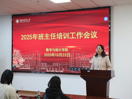 为全面加强班主任队伍建设,提升学生教育管理与服务工作水平,数学与统计学院于10月24日下午在信息大楼606报告厅举办了2025年班主任培训工作会议,院党委书记刘琼芳、全体辅导员、班主任参加会议,会议由党委副书记袁曼主持。