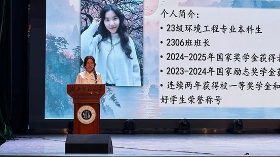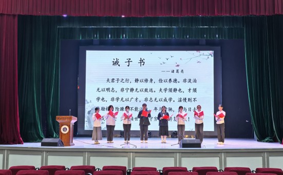 活动在全体与会人员的静默自省中拉开序幕。随后,一曲《感恩的心》缓缓响起,悠扬的旋律萦绕礼堂,温暖了每个人的心灵。在“诵经典”环节,城市与环境学院朗诵队深情诵读了诸葛亮的《诫子书》,声音铿锵有力、情感真挚动人,不仅传递出古代智者对后辈的谆谆教诲与殷切期望,也映照出千年来中华家风文化的深厚底蕴。