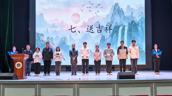 “送吉祥”环节将活动推向又一高潮。基建处处长夏小维、副处长徐星天,国际交流合作处副处长石相玉,信息化建设与管理工作处处长杨杏本,城市与环境学院党委副书记陈卓共同为同学们送上了写满祝福的“吉祥卡”,象征着美好道德与真挚祝愿的传递。