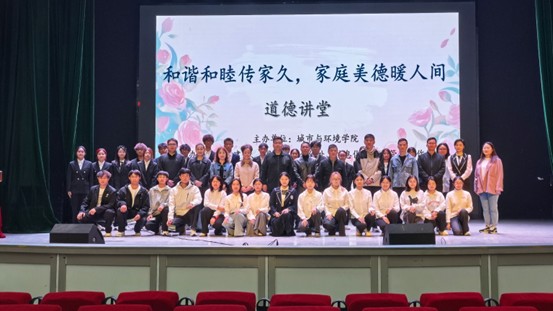 为深入推动精神文明建设,传承与弘扬中华优秀传统美德,10月23日晚,城市与环境学院联合基建处、国际交流合作处、信息化建设与管理工作处,于学校大礼堂共同举办了以“和谐和睦传家久,家庭美德暖人间”为主题的道德讲堂活动。活动旨在通过家风建设带动社会公德建设,营造崇德向善的良好氛围。