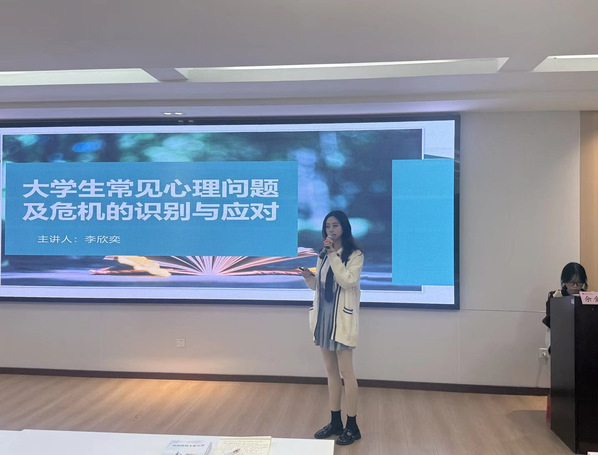 培训第二讲由中心专职教师李欣奕讲授,她围绕大学生常见心理问题及危机的识别与应对这一主题展开,阐述心理健康的定义、心理问题的类型及常见的心理障碍,帮助同学们打破思维误区,并通过案例分析引导各位心理委员掌握主要关注对象的特征及心理危机的应对策略,号召大家积极发挥心委职能,积极帮助各位同学解除心理问题,面对阳光人生。