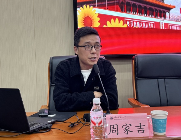 开班仪式结束后,周家吉为团校学员讲授团课第一讲——“聚焦团务提质量,奋进启航新征程”。他从社会实践、志愿服务、学习生活等维度深入讲解了共青团的基本概况、基层团组织的职能任务以及湖师团委的主要工作,并鼓励学员们真正做到学以致用,将爱国情、强国志、报国行自觉融入到今后的学习、创作与未来的职业生涯中。