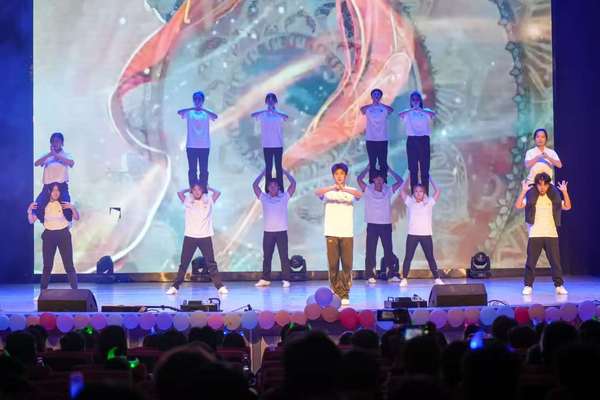 晚会在活力四射的啦啦操《Cheers》中火爆开场,瞬间点燃了全场的热情,展现了体育人特有的朝气与活力。整场晚会节目形式多样,内容丰富,精彩纷呈。深情款款的独唱引得观众沉醉其中,我院吴斌老师演唱的《特别的爱给特别的你》掀起全场跟唱,氛围热烈;乐队串烧引发了全场大合唱,将晚会推向一个小高潮。舞蹈类节目更是异彩纷呈,既有动感十足的《韩舞集结》、《Girls will be Girls》,也有韵味十足的《再现经典》、《舞境漫游》,充分展示了同学们的多才多艺。彭柳老师的歌伴舞《春天的芭蕾》,为我们展现了声乐与舞蹈的完美对话。作为体育学院的特色节目,武术表演《武韵风华》刚柔并济,一招一式尽显中华传统文化底蕴;而健身健美展示《力竭时刻,冠军之路》则通过健硕的体魄和力量的线条,直观地诠释了“力与美”的结合,赢得了阵阵惊叹与掌声。技巧表演《象王行》气势恢宏,动作高难,展现了同学们卓越的身体素质和专业技能。晚会在气势磅礴的大合唱《少年中国谈》中落下帷幕,铿锵有力的歌声表达了体院学子强国有我、不负韶华的坚定信念。