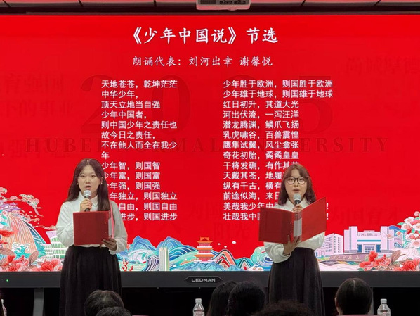 经典浸润心灵,美德代代相传。“诵道德经典”环节,刘河出幸、谢馨悦领诵《少年中国说》片段,让“少年强则国强”的嘱托直抵师生心间。随后,何蝶蝶与敖心蕊在“谈感悟”环节中表示将以榜样为镜,把诚信、担当、协作等品质融入学习生活中,在青春赛道练就过硬本领,涵养高尚品质。
