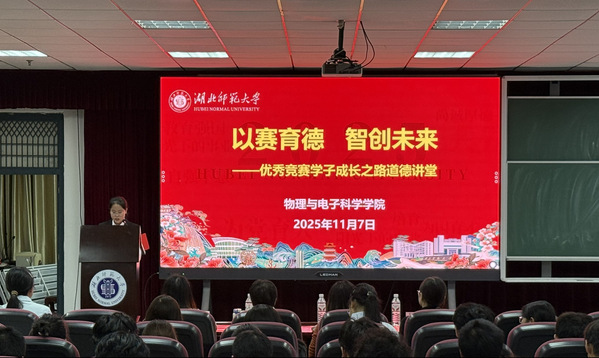 为厚植湖师学子的道德素养,筑牢思想道德根基,11月7日晚,物理与电子科学学院于信息大楼二楼报告厅举办2025年“以赛育德,智创未来”道德讲堂活动。yl23455永利官网国资处副处长陈小露、陈晨,物理与电子科学学院党委副书记刘雅,辅导员李双翼及25级学生出席活动。本次活动由吴甜甜主持。