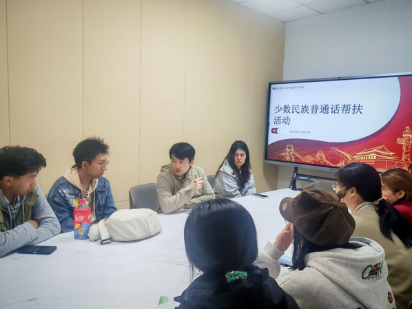 针对部分少数民族学生因语言环境限制而面临的普通话学习困难,学院组织普通话水平达二级甲等及以上的志愿者,采取“一对一”结对模式开展精准辅导。张良详细介绍了帮扶计划与监督机制,强调务求实效。与会学生积极响应,少数民族同学表示会珍惜机会、勤学苦练;帮扶志愿者亦承诺认真履责、协同共进。